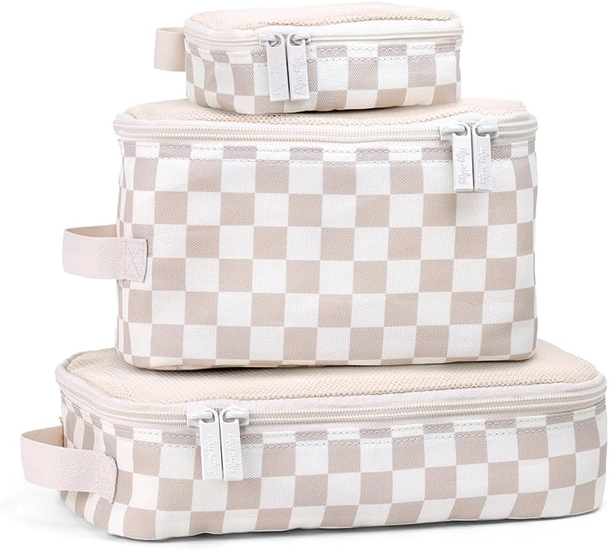 Itzy Ritzy Packing Cubes for Travel – Set of 3 Packing Cubes or Travel Organizers; Each Cube Features a Mesh Top, Double Zippers and a Fabric Handle (Checkerboard)